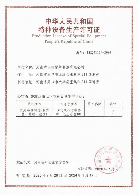 • 特種設備生產許可證